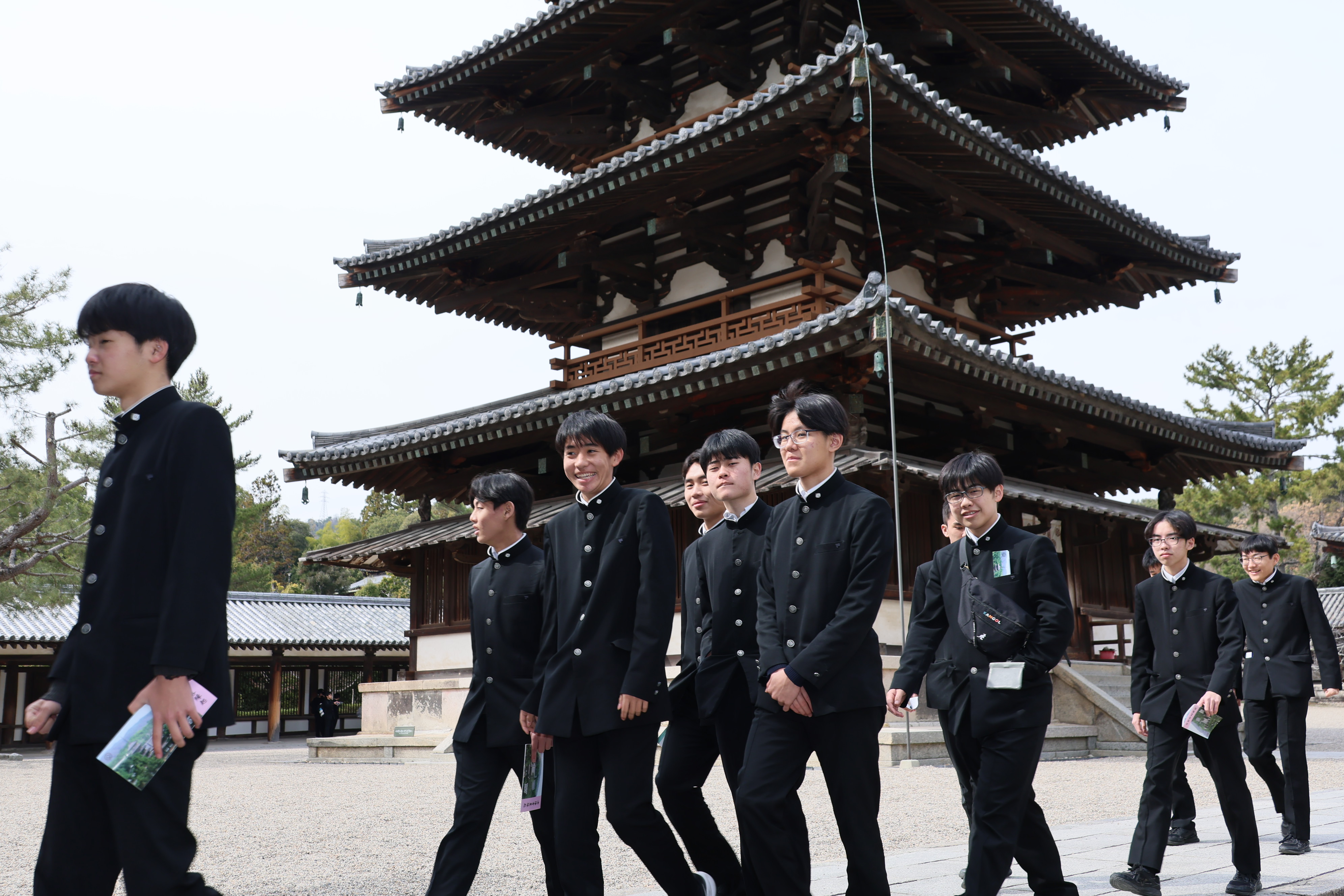 薬師寺では僧侶による法話を伺いました。ユーモアを交えながら仏教の教えや人生について語ってくださり、生徒たちは笑いながらも真剣な表情で耳を傾けていました。歴史ある寺院の空気の中で、静かに言葉に耳を傾ける時間は、生徒たちにとって心に残るひとときとなったようです。