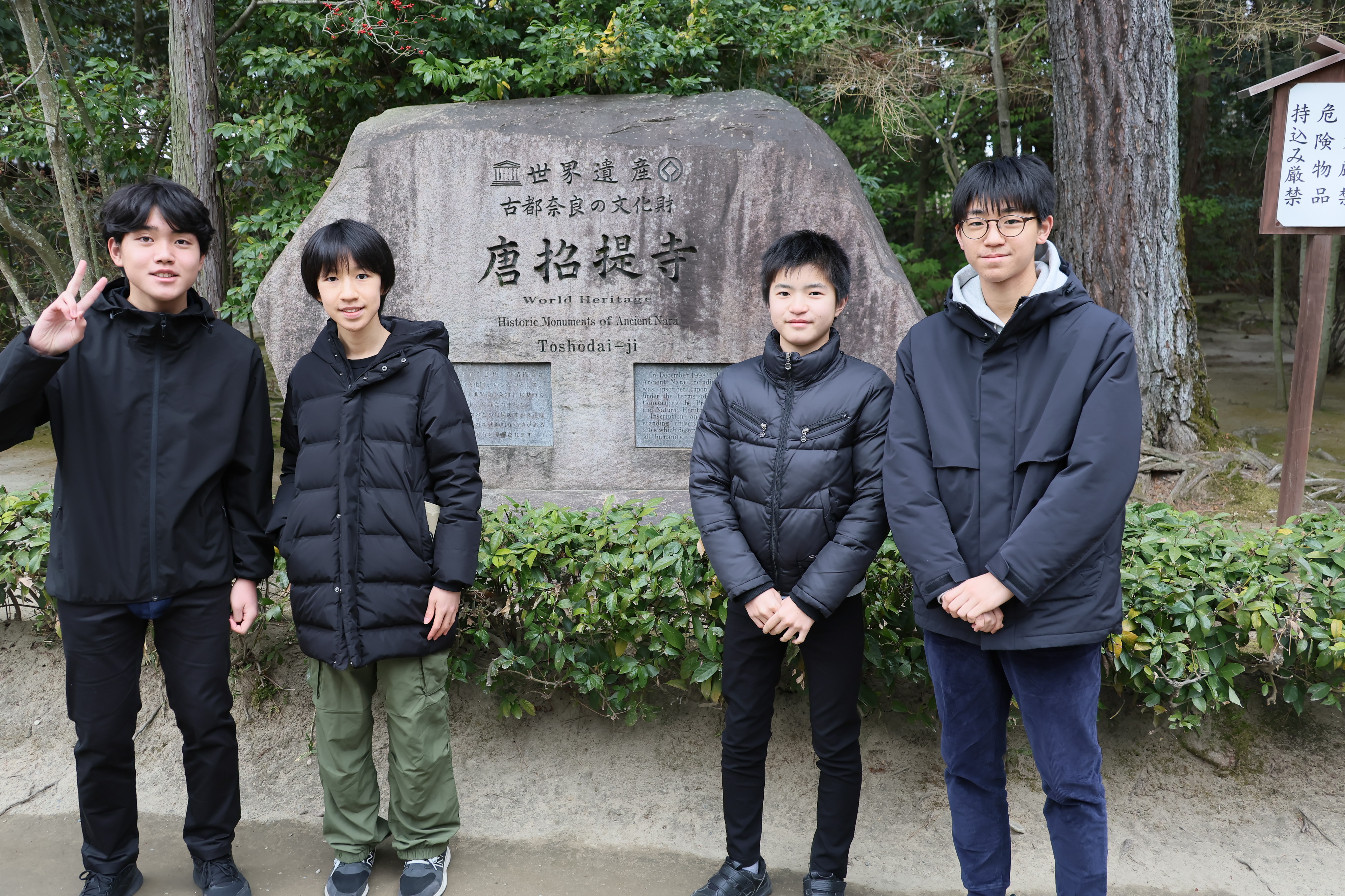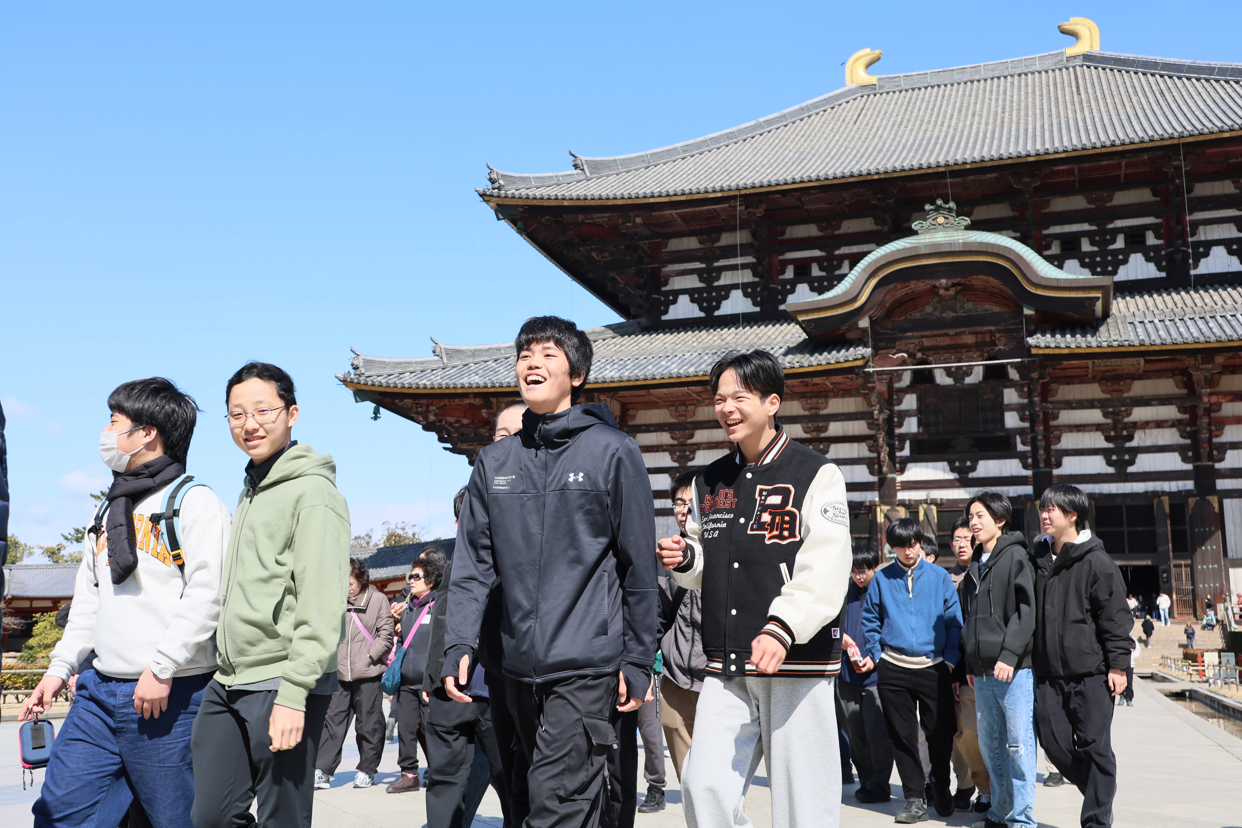 2日目は奈良での見学を続け、唐招提寺や東大寺を訪れました。奈良時代から続く文化や建築の壮大さに触れ、生徒たちは日本の歴史の奥深さを実感している様子でした。