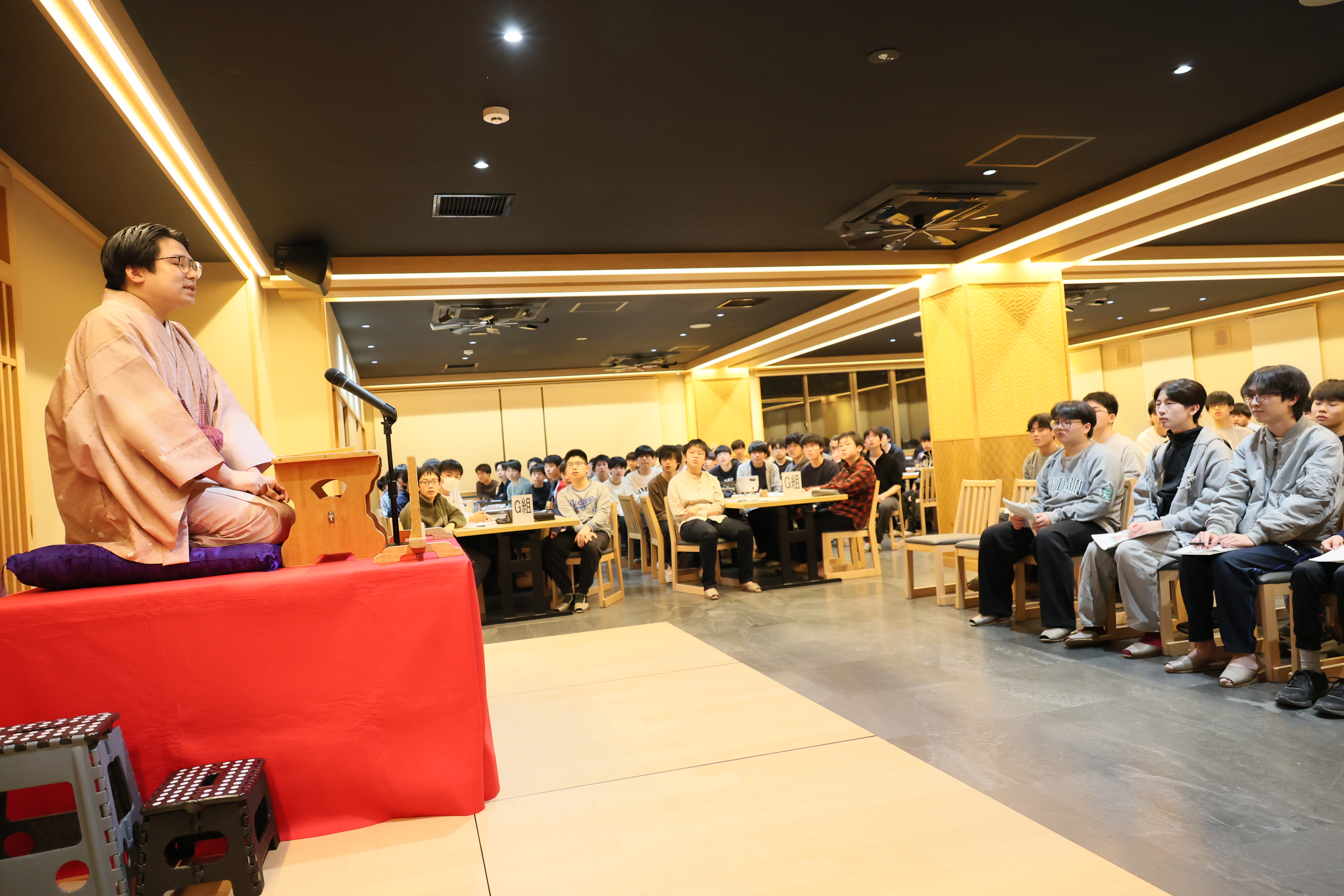 夜には上方落語鑑賞を行いました。落語の語りの巧みさや表現の面白さに、生徒たちは何度も笑い声を上げ、仲間とともに楽しい時間を共有しました。