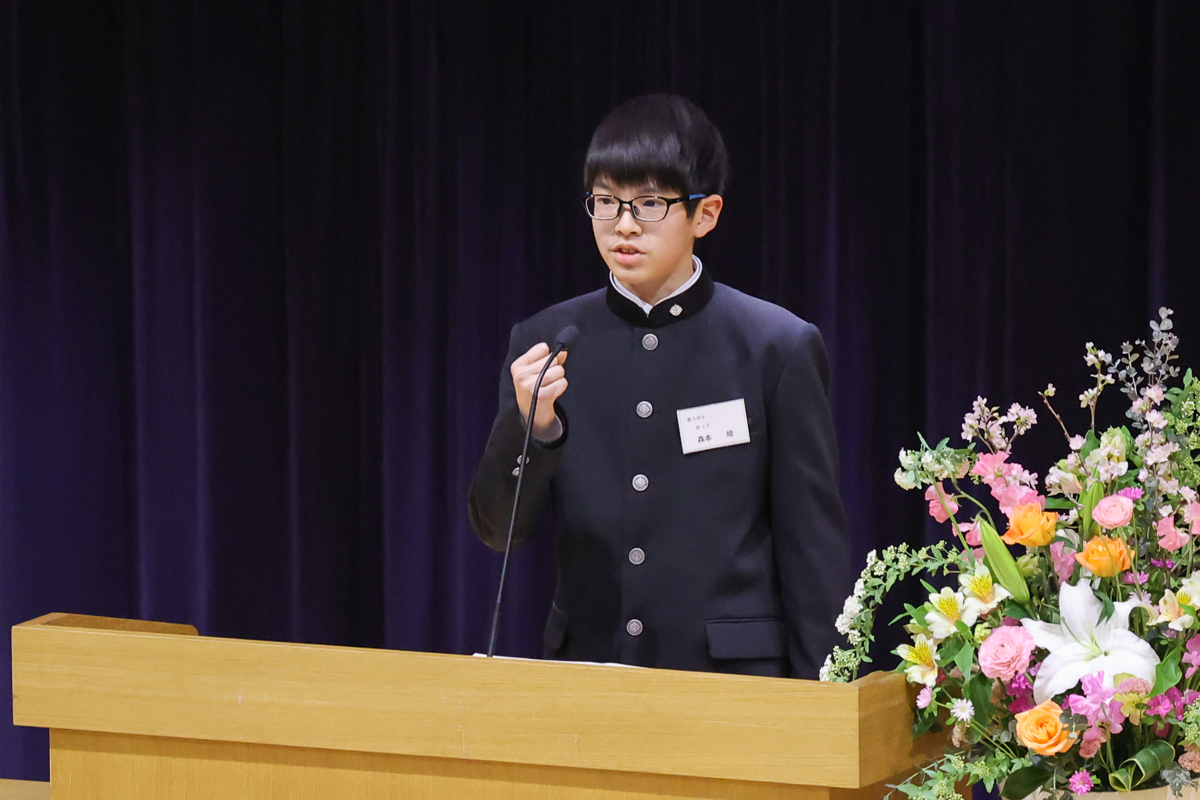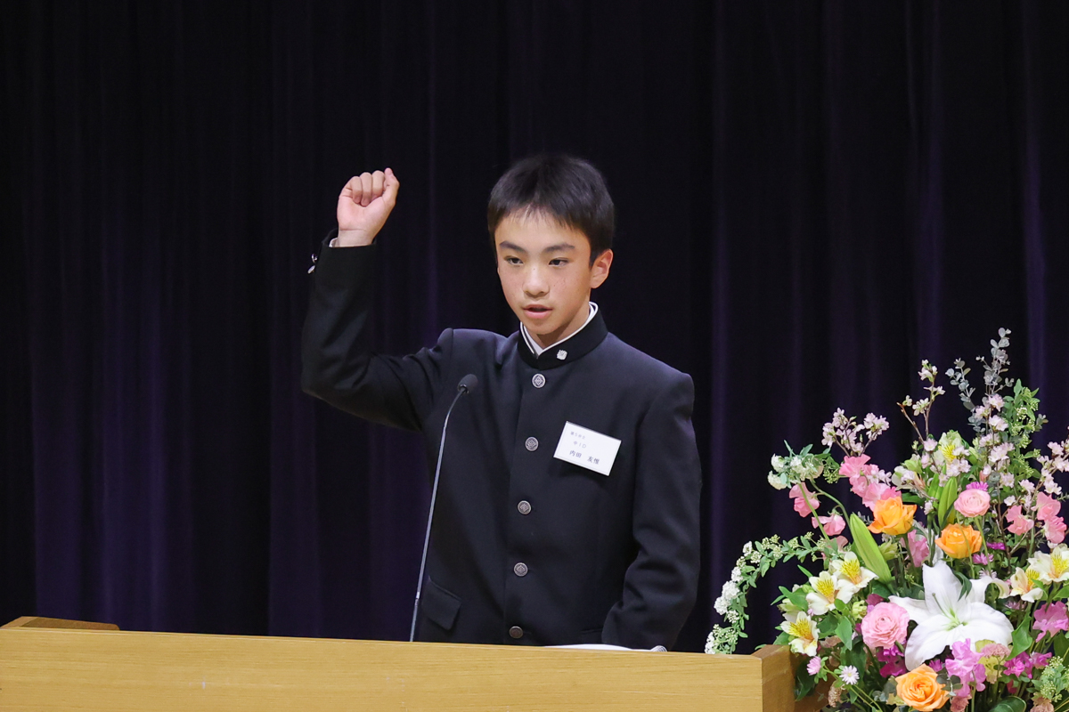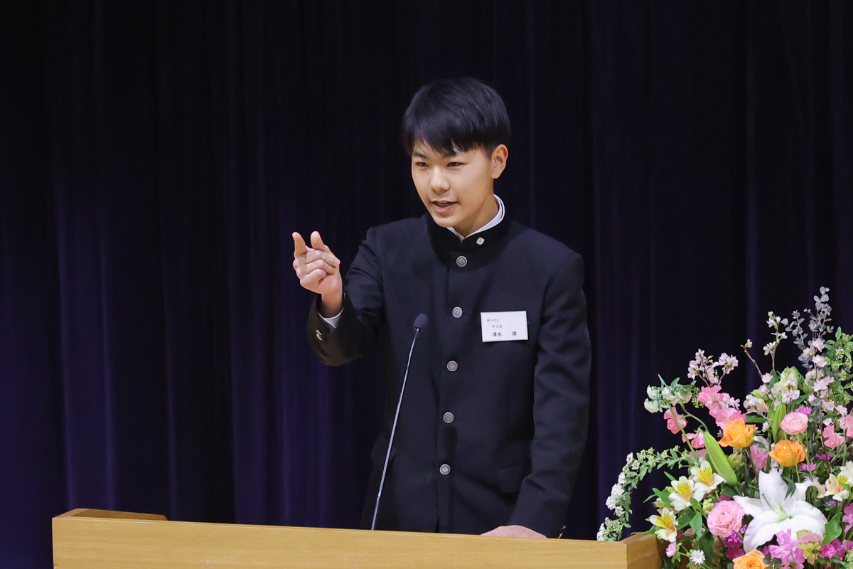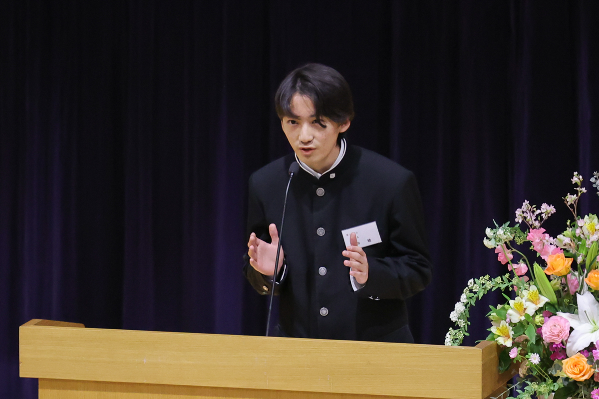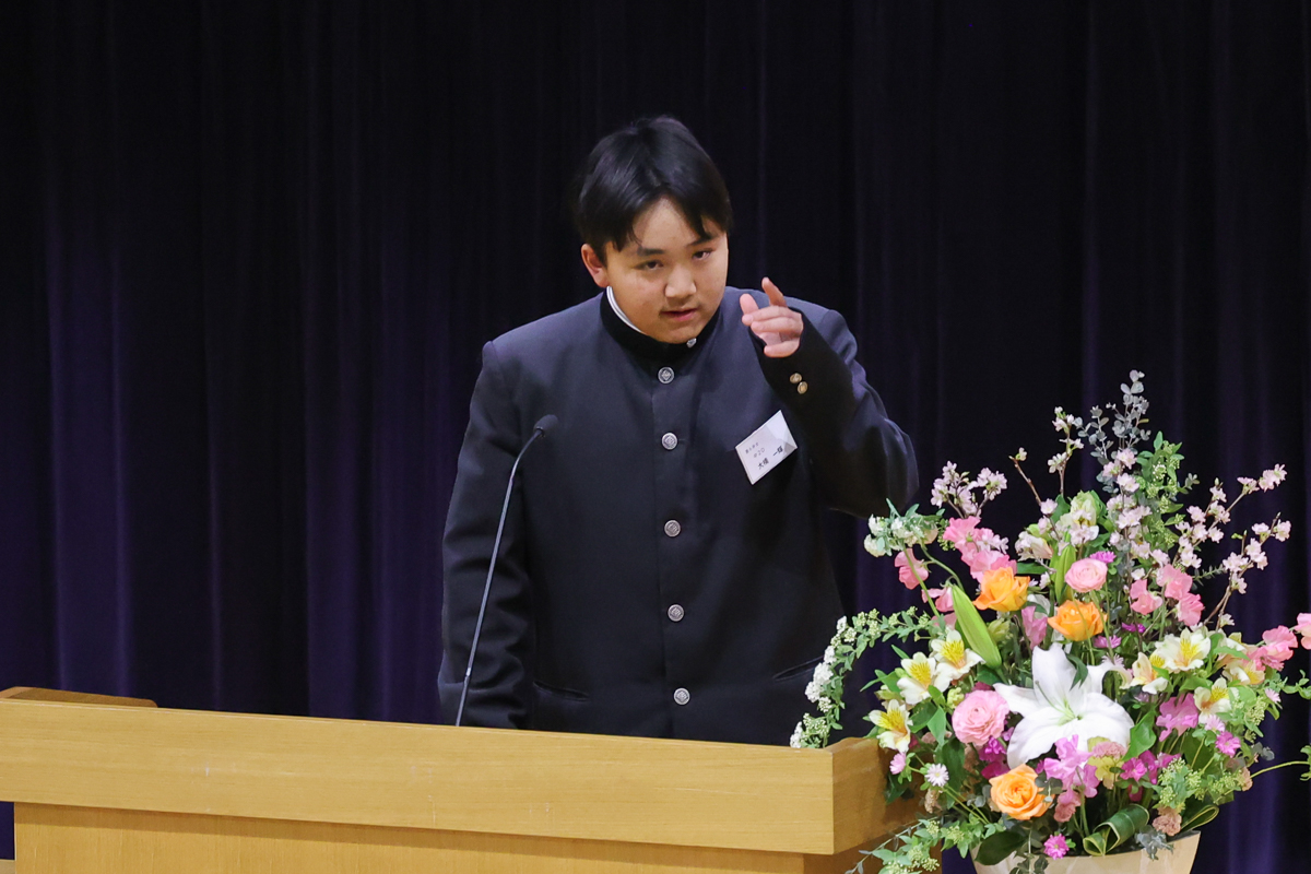 とはいえ、アルママタホールで登壇した生徒たちは一様に緊張の面持ちで、画面の向こうの生徒たちに自分の思いを熱くぶつけました。
