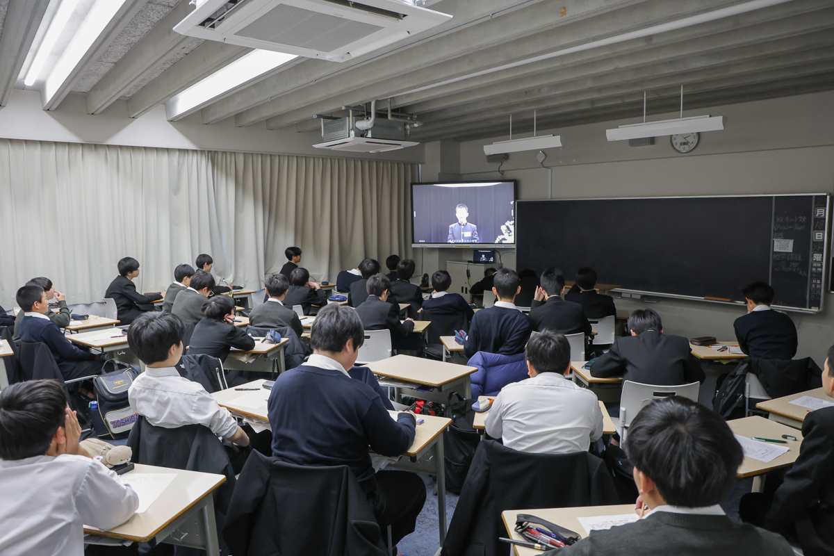 インフルエンザの感染拡大防止のため、残念ながら聴衆の生徒は各教室での視聴という形式になりました。